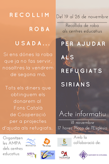 La proposta és molt senzilla: recollirem roba usada per vendre-la de segona mà i tots els diners que recaptem els donarem al Fons Català de Cooperació per a projectes d'ajuda als refugiats.