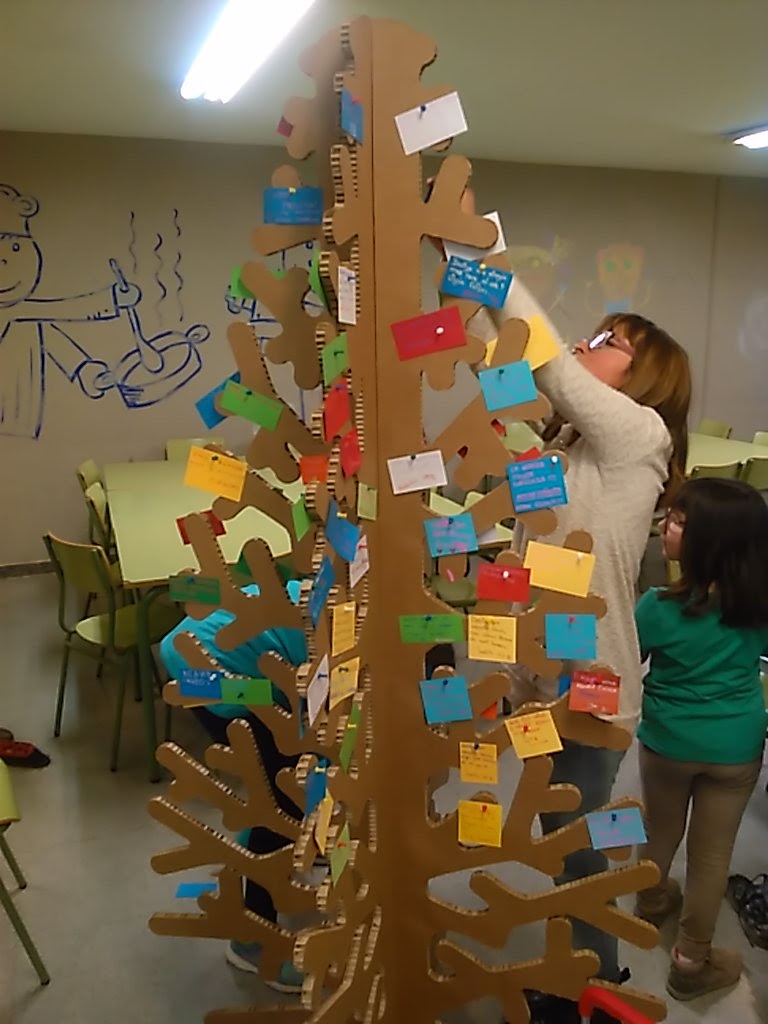 Dilluns, a les portes obertes, vàrem crear l'arbre dels desitjos on tots vàrem poder deixar un missatge per a la nostra escola: d'agraïment, de futur, de desig de millora, d'esperança...