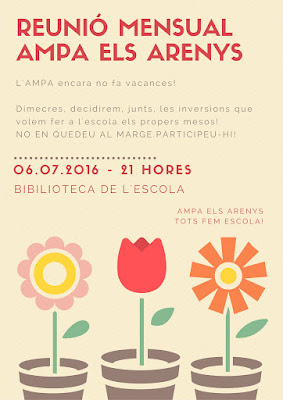 Aquest dimecres, tornem a trobar-nos per continuar treballant per l'escola. Farem valoració de com ha anat l'any i mirarem com encarar el curs que ve... I, sobretot, decidirem quines inversions volem fer a l'escola durant els propers mesos.